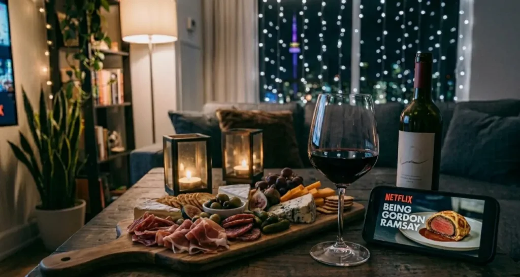 Level up: If you’ve got any charcuterie, cheese, or even just crackers in the fridge — pull them out. Red wine + a simple board + Gordon Ramsay on screen = an experience, not just a show.
